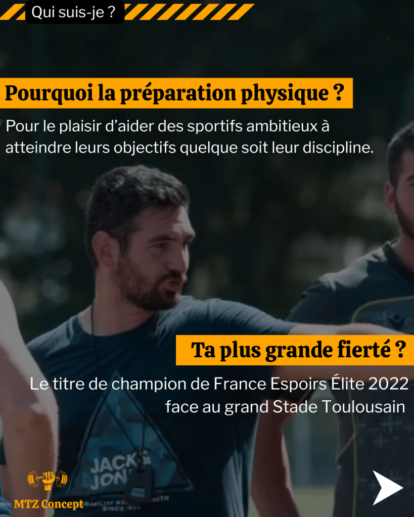 MTZ Concept est une entreprise française dans le domaine du sport et spécialisée dans la préparation physique. Créée par Arnaud Metzger en 2020, MTZ Concept vise à optimiser la performance d’un individu ou d’une équipe sportive que ce soit par l’intermédiaire du développement des qualités physiques (force, vitesse, endurance, explosivité, etc..), la prévention des blessures, la réathlétisation et l’individualisation.