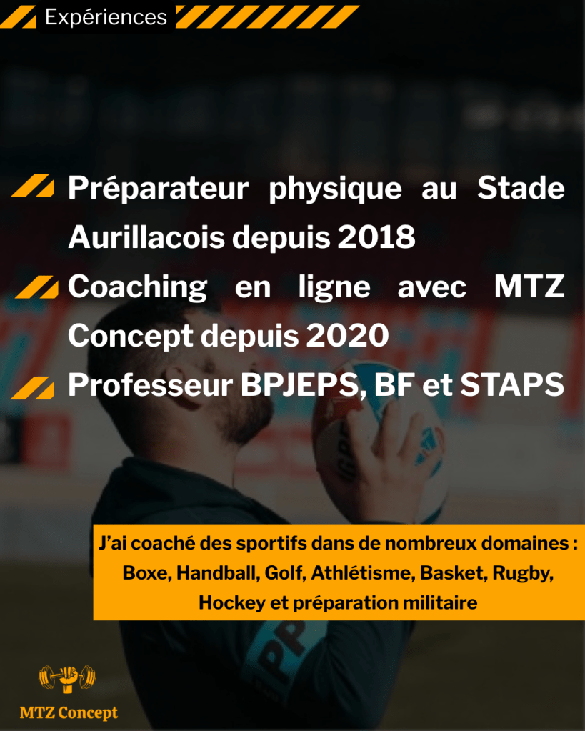 - Actuel préparateur physique au Stade Aurillacois Cantal Auvergne (structure professionnelle de rugby évoluant en 2ème division professionnelle / Pro D2)